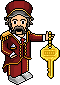 Frank has been a main character in Habbo for many years. He was created to take the role of Hotel receptionist, often depicted showing Habbos to their rooms and working behind the desk in ads. After the re-launch of the Welcome Lounge, the Harry bot was removed and was replaced by Frank. At one point, there were many words or phrases you can say in Frank's presence which would each warrant a different response.
