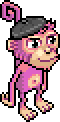 Monkeys are able to speak, being provided with a very sassy and rather eccentric personality. Otherwise, monkeys share the same characteristics as many other Habbo pets. Monkeys are also able to swim across water patches and each wear a black beret.