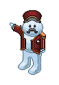 Frank is best known as Habbo's mascot. Portrayed as a hotel doorman, he is very knowledgeable of the hotel's inner workings. Frank never actually appears in the hotel, but he can be found on many different advertisements. Frank even featured as one of the styles of Snowman released as part of Christmas furni.